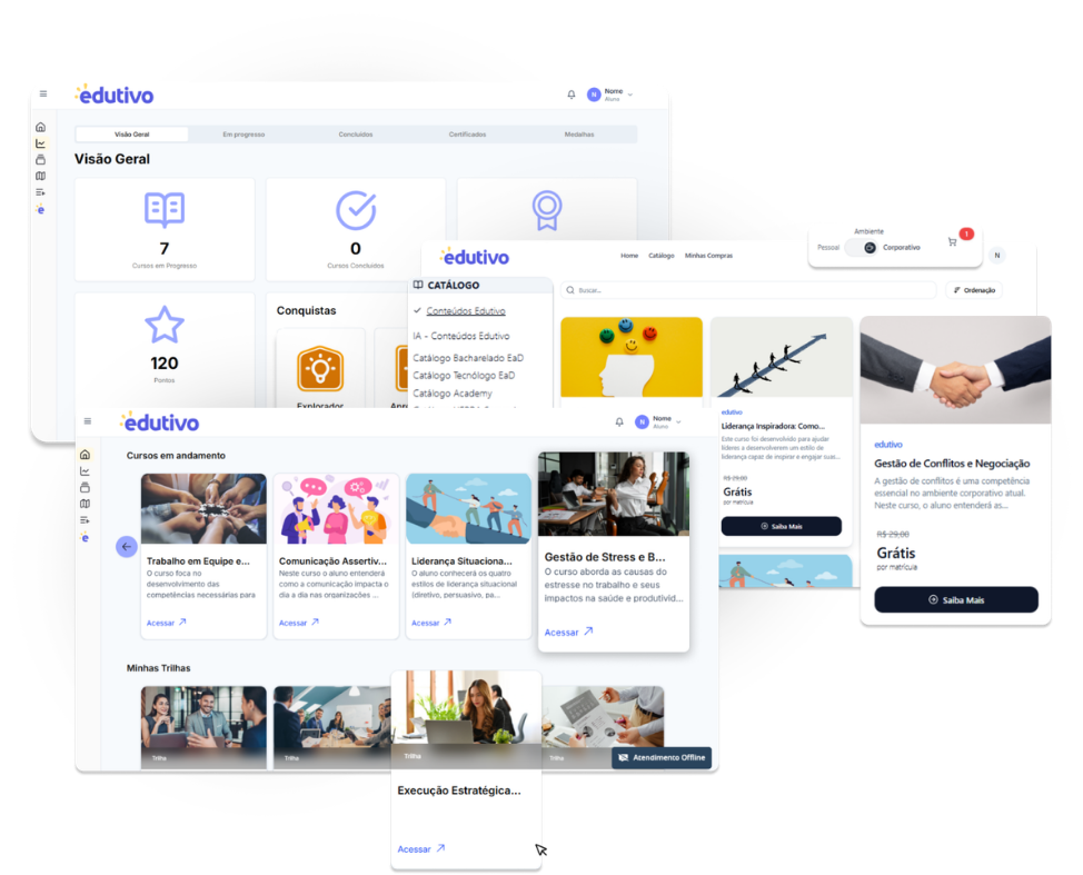 Com o Edutivo Studio crie cursos com o poder da IA. Transforme o conhecimento da sua empresa em treinamentos interativos e ágeis.